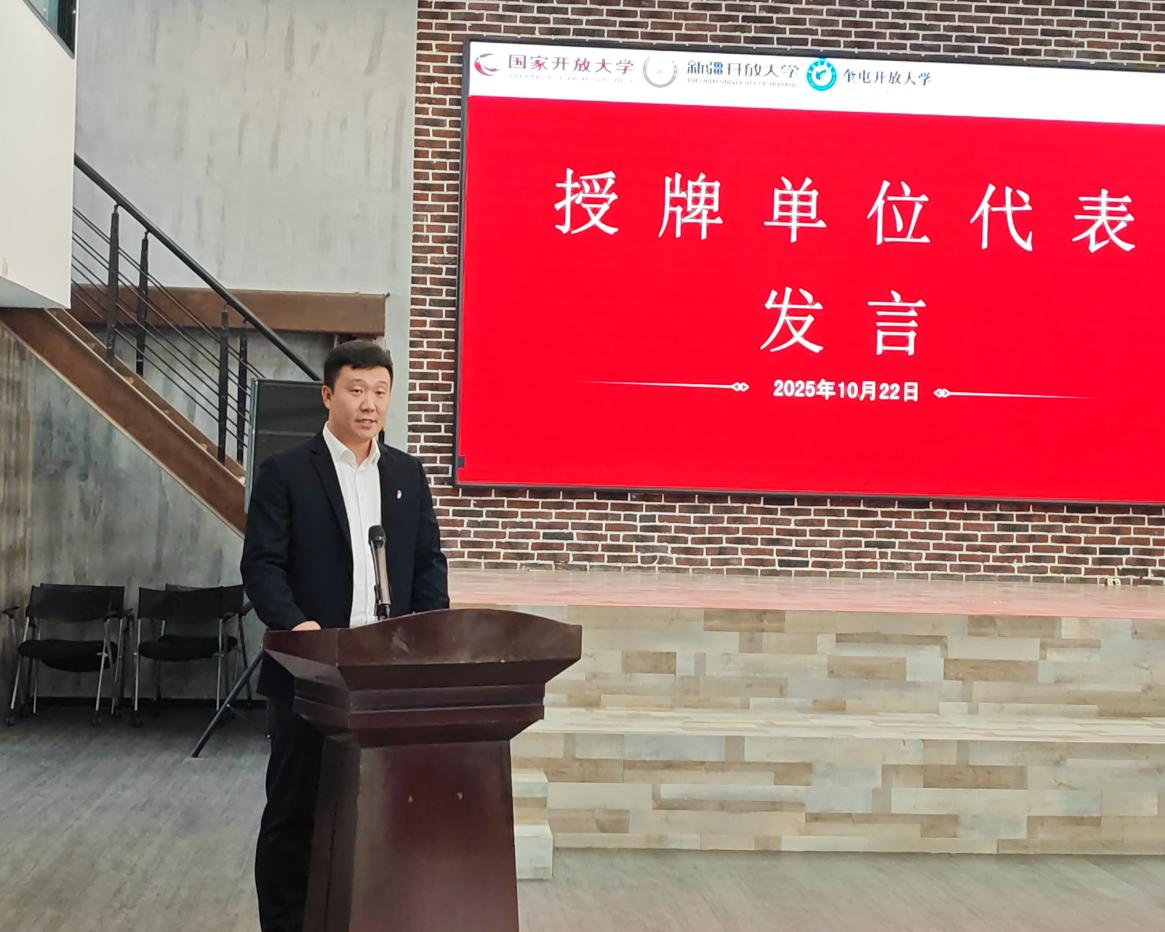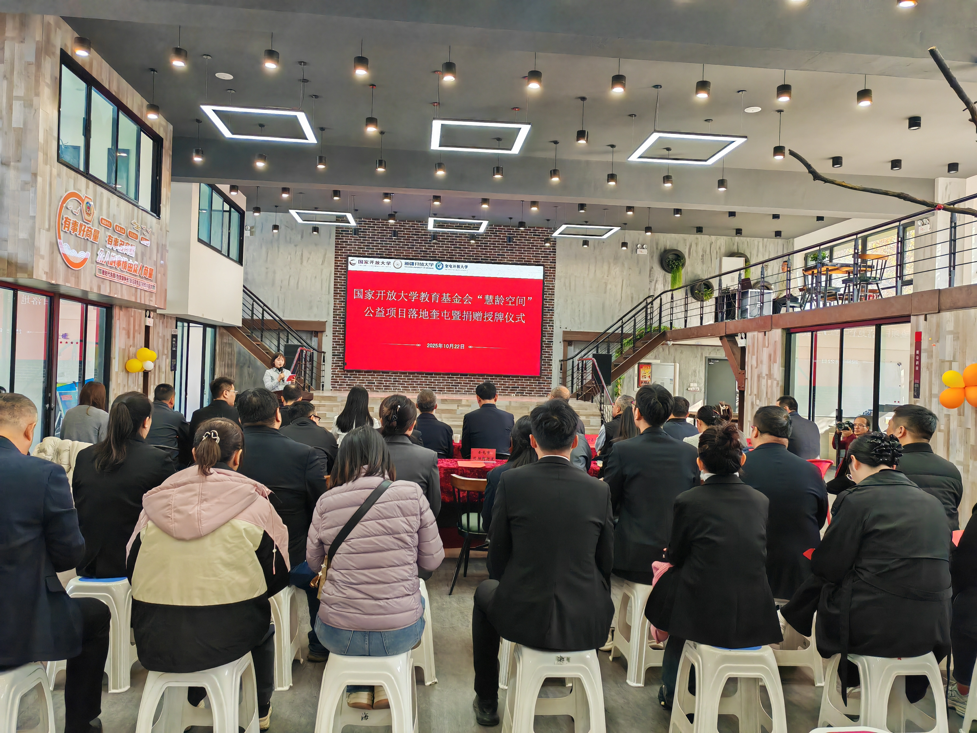2025年10月22日,国家开放大学教育基金会“慧龄空间”公益项目落地暨捐赠授牌仪式在新疆奎屯市隆重举行。国家开放大学教育基金会理事长鞠传进,新疆开放大学党委委员、副校长崔军,奎屯市政协党组书记、副主席白耀文出席,国家开放大学教育基金会、出版传媒集团,新疆开放大学,奎屯市人民政府以及市委社会工作部、市教育局相关同志,10个拟建空间代表参加活动。