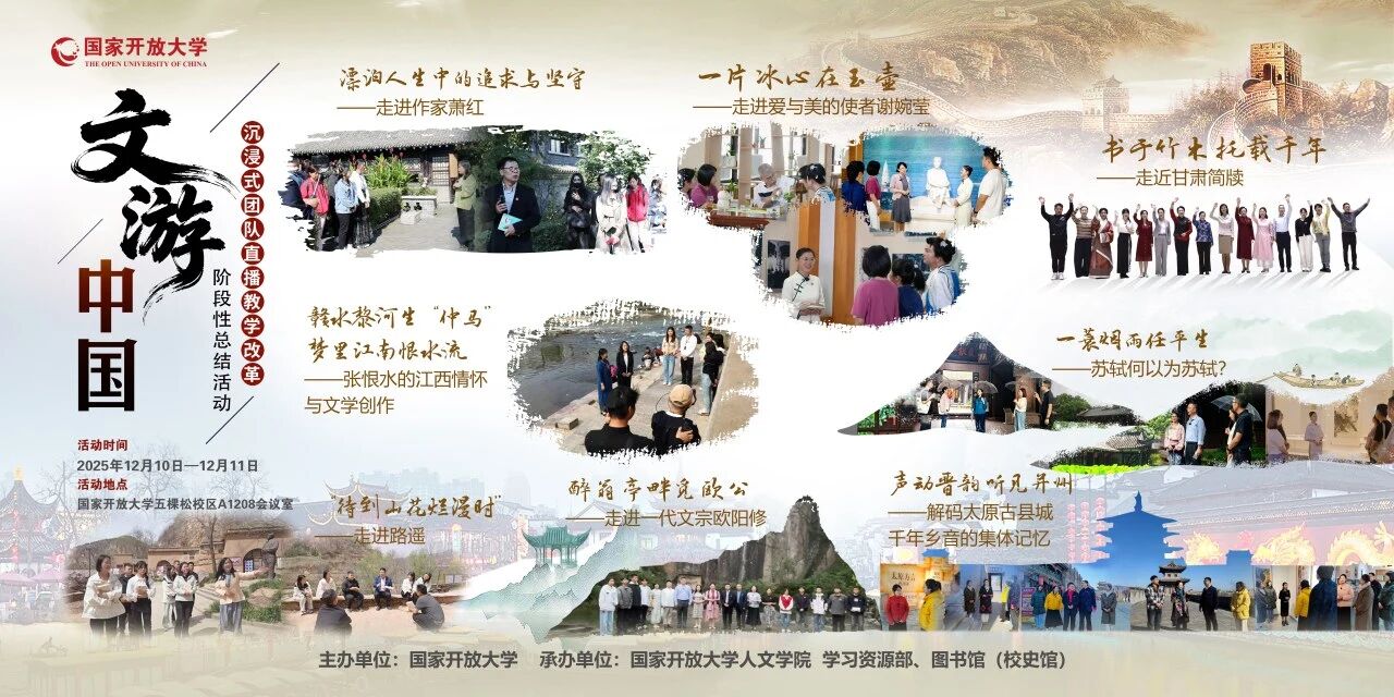12月10—11日,国家开放大学“文游中国”沉浸式团队直播教学改革阶段性总结活动在京举行。“文游中国”是国家开放大学发挥体系优势打造的特色文化育人项目。该项目融合实景移动教学、数智赋能线上线下融合教学,运用“一镜到底”的直播运镜方式,联动办学体系多学科教师,设计具有地域特色的经典文学文化内容,为学习者营造“沉浸式”学习体验。自2024年9月第一讲走进哈尔滨萧红故居沉浸式直播以来,共直播8讲,累计服务体系内外学习者近69万人。