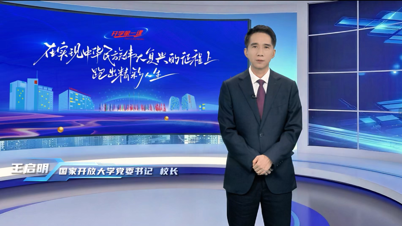 9月15日,国家开放大学党委书记、校长王启明以《在实现中华民族伟大复兴的征程上跑出精彩人生》为题,以直播形式为办学体系全体师生讲授了温暖感人的开学第一课。