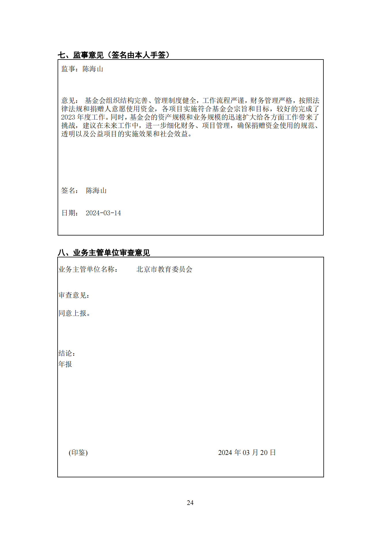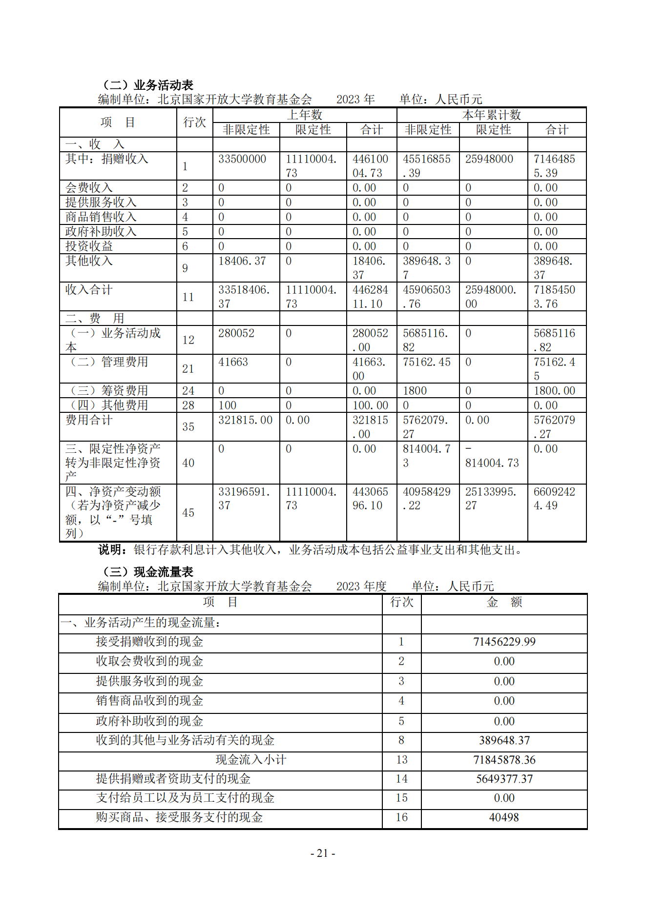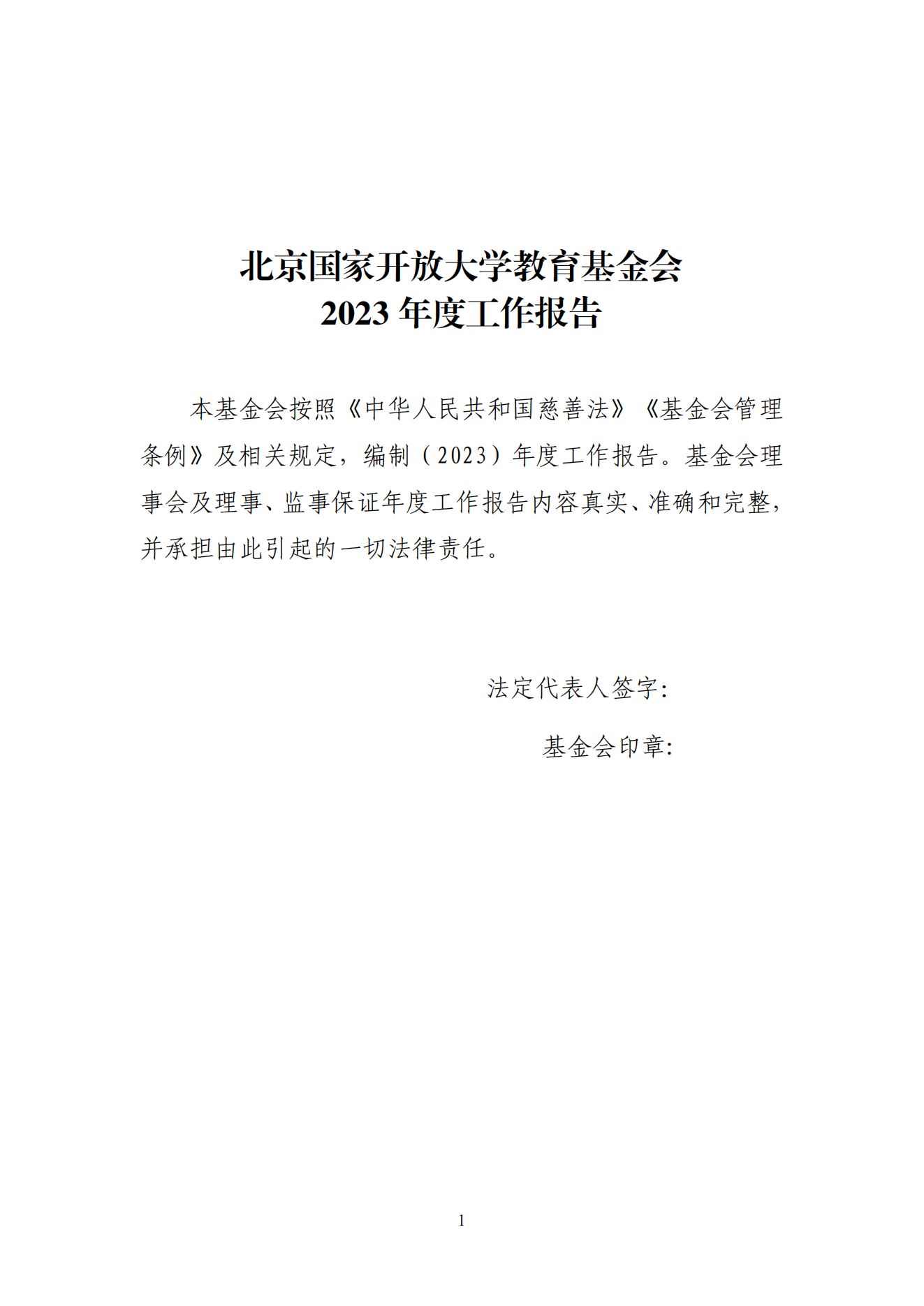 北京国家开放大学教育基金会2023年度工作报告 2024-03-24