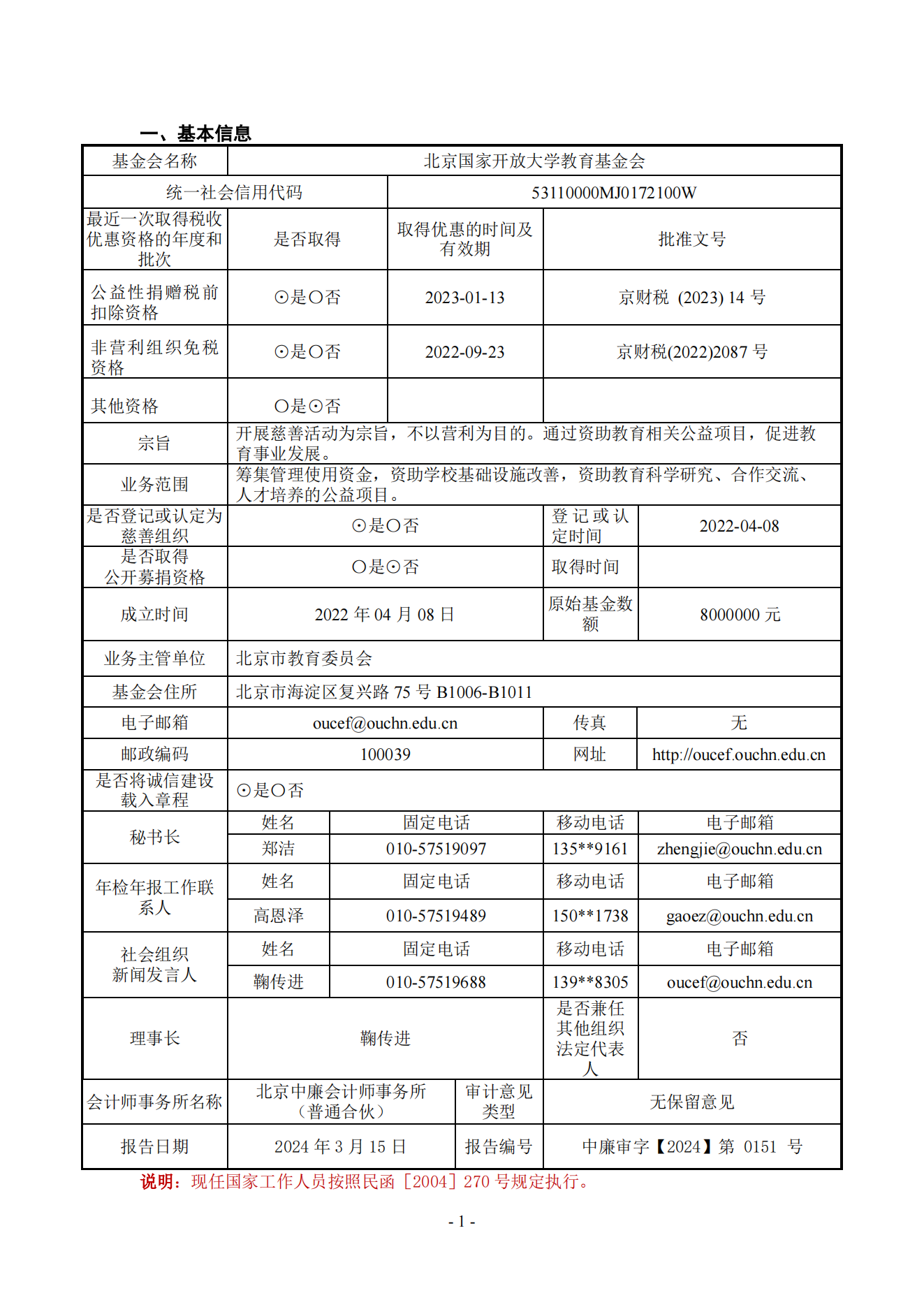 北京国家开放大学教育基金会 THE OPEN UNIVERSITY OF CHINA EDUCATION FOUNDATION (BEIJING)