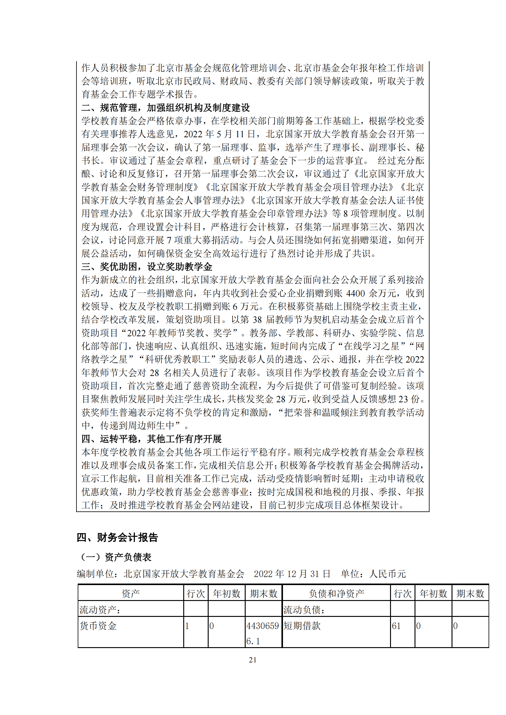 北京国家开放大学教育基金会2022年度工作报告