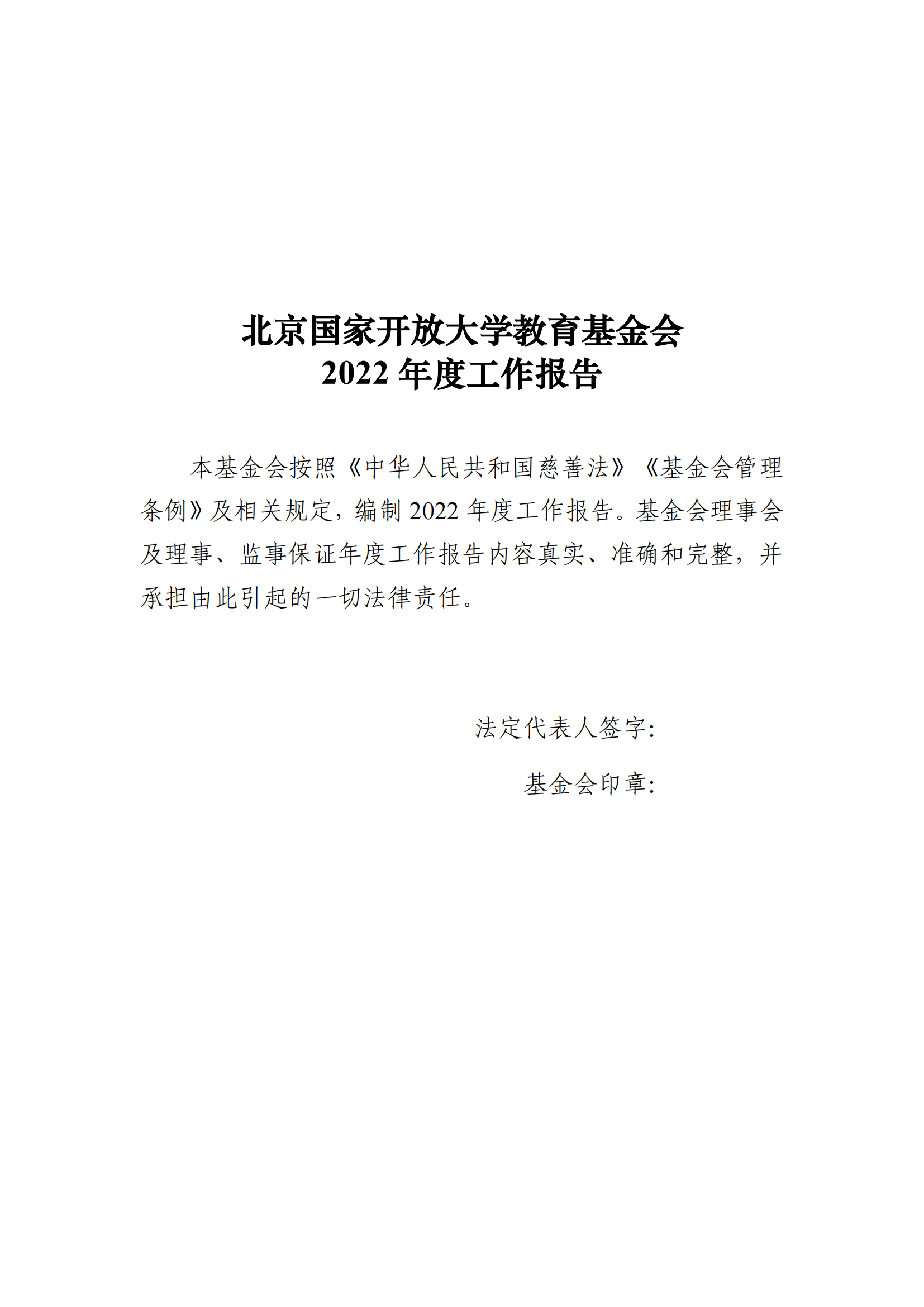北京国家开放大学教育基金会2022年度工作报告 2023-05-15