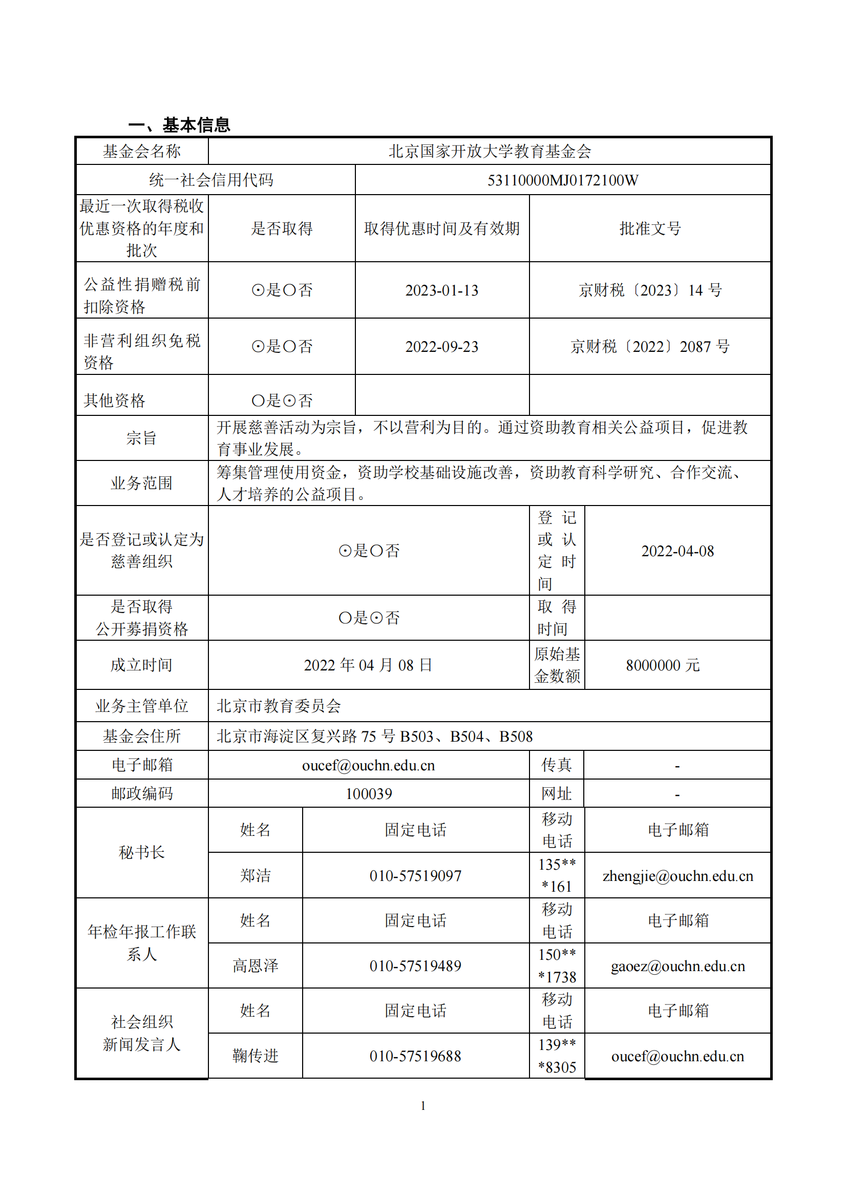 北京国家开放大学教育基金会 THE OPEN UNIVERSITY OF CHINA EDUCATION FOUNDATION (BEIJING)